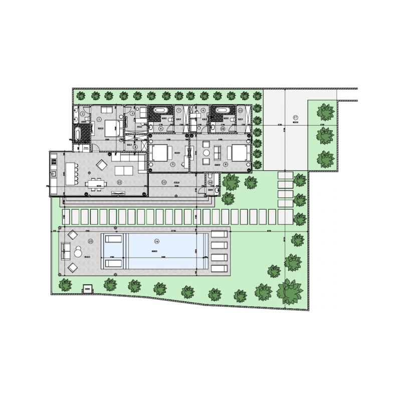 Sunny Marbella features three spacious bedrooms, making it an ideal retreat for families or larger groups of tourists. Each bedroom is designed with meticulous attention to detail, combining comfort and elegance to ensure a memorable stay. The Balinese style permeates the interior, with carefully selected furnishings and decor that reflect the rich cultural heritage of the island.