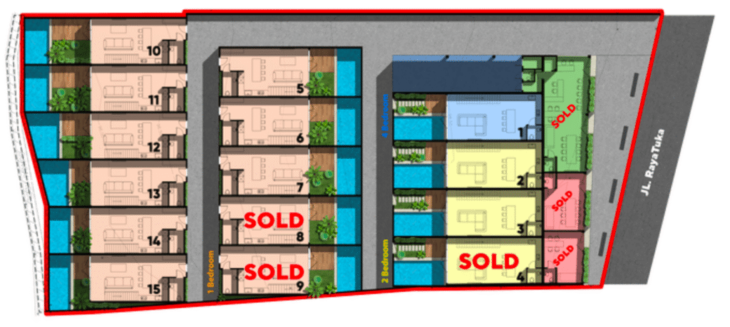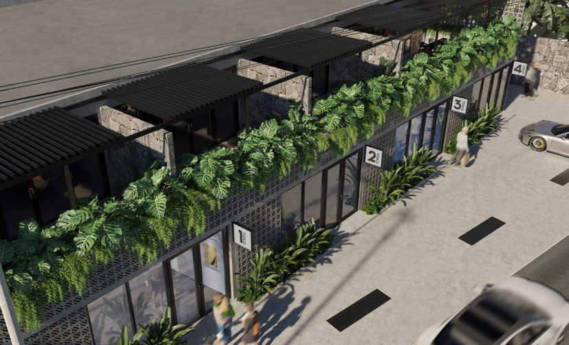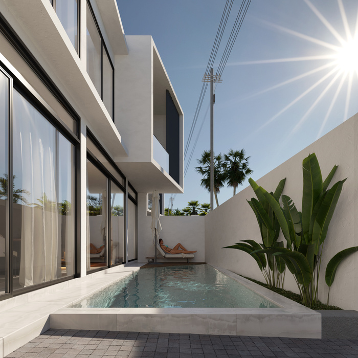 A complex with two-level designer apartments, where every detail has been carefully considered. A place that feels like home, where you can fully relax and enjoy solitude in the very popular tourist spot of Canggu. Acquire your piece of paradise and invest in the future. The front facade of complex has been meticulously crafted in alignment with overarching project concept, seamlessly harmonizing with both the surrounding natural environment and the prospects of the future. Here, concrete ornamental inserts are seamlessly integrated into the surrounding environment, creating a stunning blend of vitality and aesthetics.