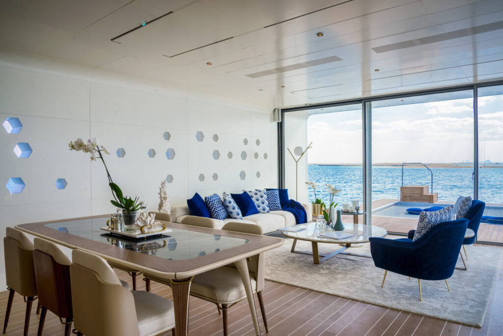 A feat of innovation achieved by a marriage of engineering and imagination, The Floating Seahorse villas are an epitome of timeless design and craftsmanship spread across three levels including a spectacular underwater floor. As well as providing the world’s first floating underwater experience the Floating Seahorse villas will be home to unique special features, state-of-the-art technology and outdoor climate-controlled areas.