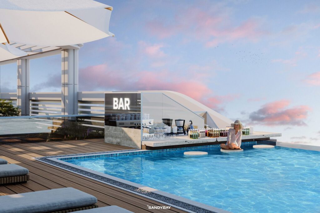The project includes an array of leisure facilities, such as a rooftop infinity saltwater pool, an advanced fitness center, and a business lounge. Coupled with spectacular views of the surrounding maritime area and a short five-minute walk to the beach, Tivano 1 is an ideal location for luxury living.